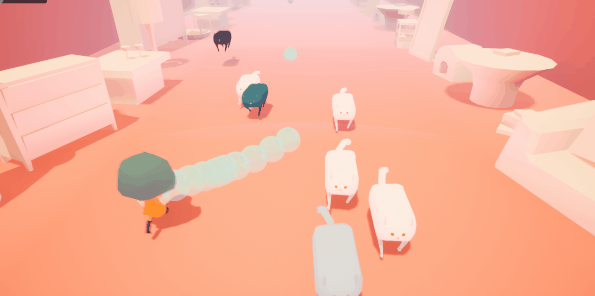 Shoo-Em-Up is a short game of the "shoot-em-up" genre where you attempt to bring a bowl of soup back to your room while squirting water at the cats trying to drink it.